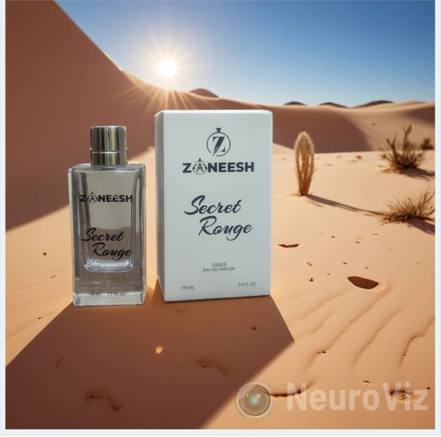 | “SECRET ROUGE – Where Fresh Meets Fearless. A vibrant yet grounded fragrance for men who make waves. Spray. Command. Repeat.” “The Scent of Unstoppable Confidence”) |